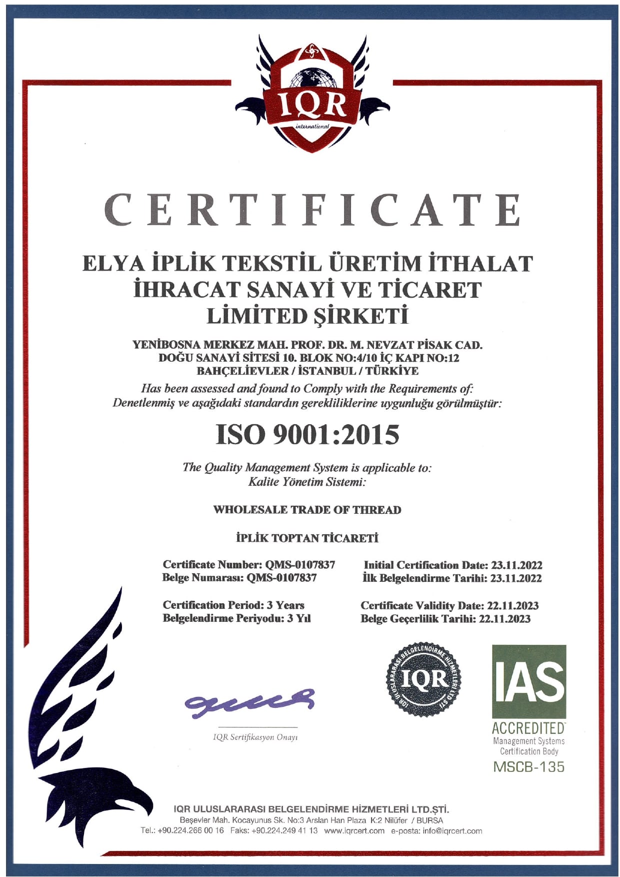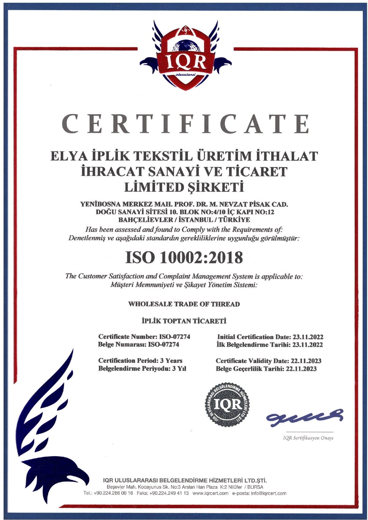 Yenibosna Merkez Mh. Prof.Dr. M.Nevzat PisakCd. Doğu Sanayi Sitesi 10.Blok 4/10 No:12 Bahçelievler / İstanbul